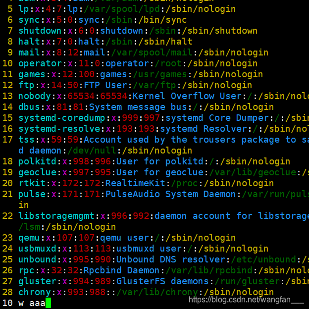 9.将/etc/passwd 文件中的第十行内容写入aaa文件。