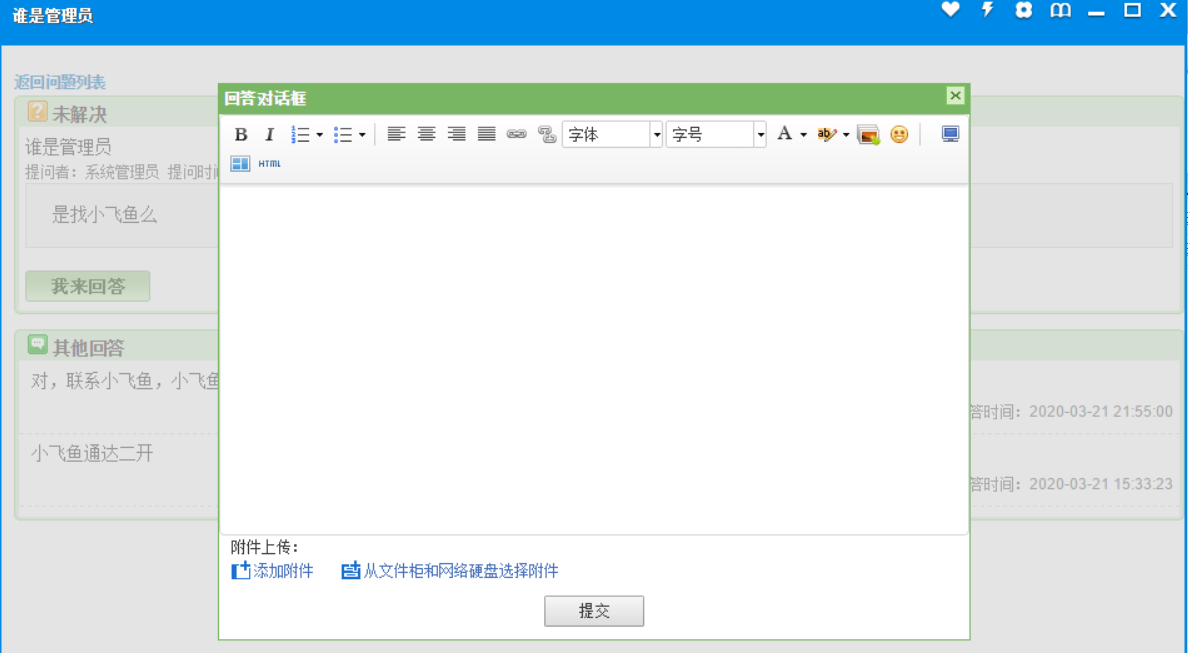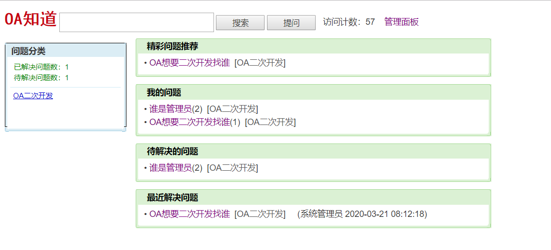 通达的OA知道模块采用了类似百度知道的模式,每个人都可以提出问题,然后由其他人进行解答。这里需要对回答问题的人做出限定,由管理员指定某一个人来解答问题。