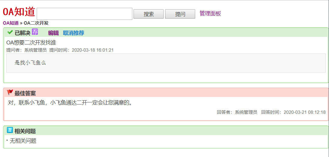 本文主要是介绍小飞鱼通达二开 通达OA知道二次开发指定回答人回答问题(图文),希望对大家解决编程问题提供一定的参考价值,需要的开发者们随着小编来一起学习吧!