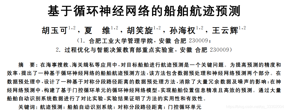 本文主要是介绍论文阅读:基于循环神经网络的船舶航迹预测,希望对大家解决编程问题提供一定的参考价值,需要的开发者们随着小编来一起学习吧!