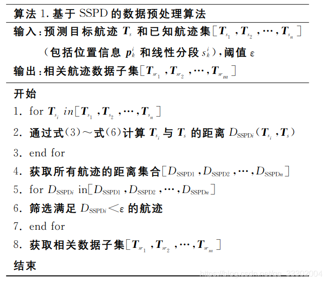 提出了一种基于循环神经网络的船舶航迹预测方法,主要包含两个部分:数据预处理(SSPD)和循环神经网络预测模型,算法流程如下:
