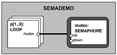 ||SEMADEMO = (p[1..3]:LOOP||{p[1..3]}::mutex:SEMAPHORE(1)).