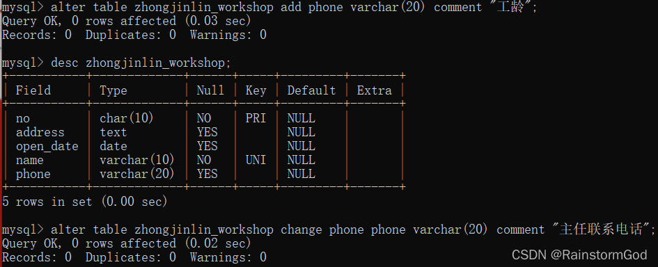 2.车间表需要添加主任的联系电话字段,方便之后管理车间