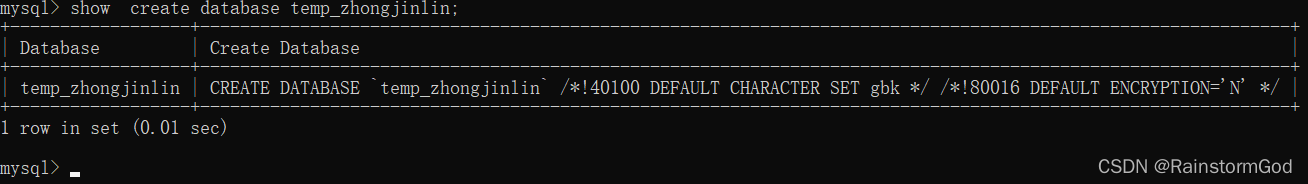 查看 temp_姓名全拼 数据库创建信息,告诉大家刚才的修改已经生效了