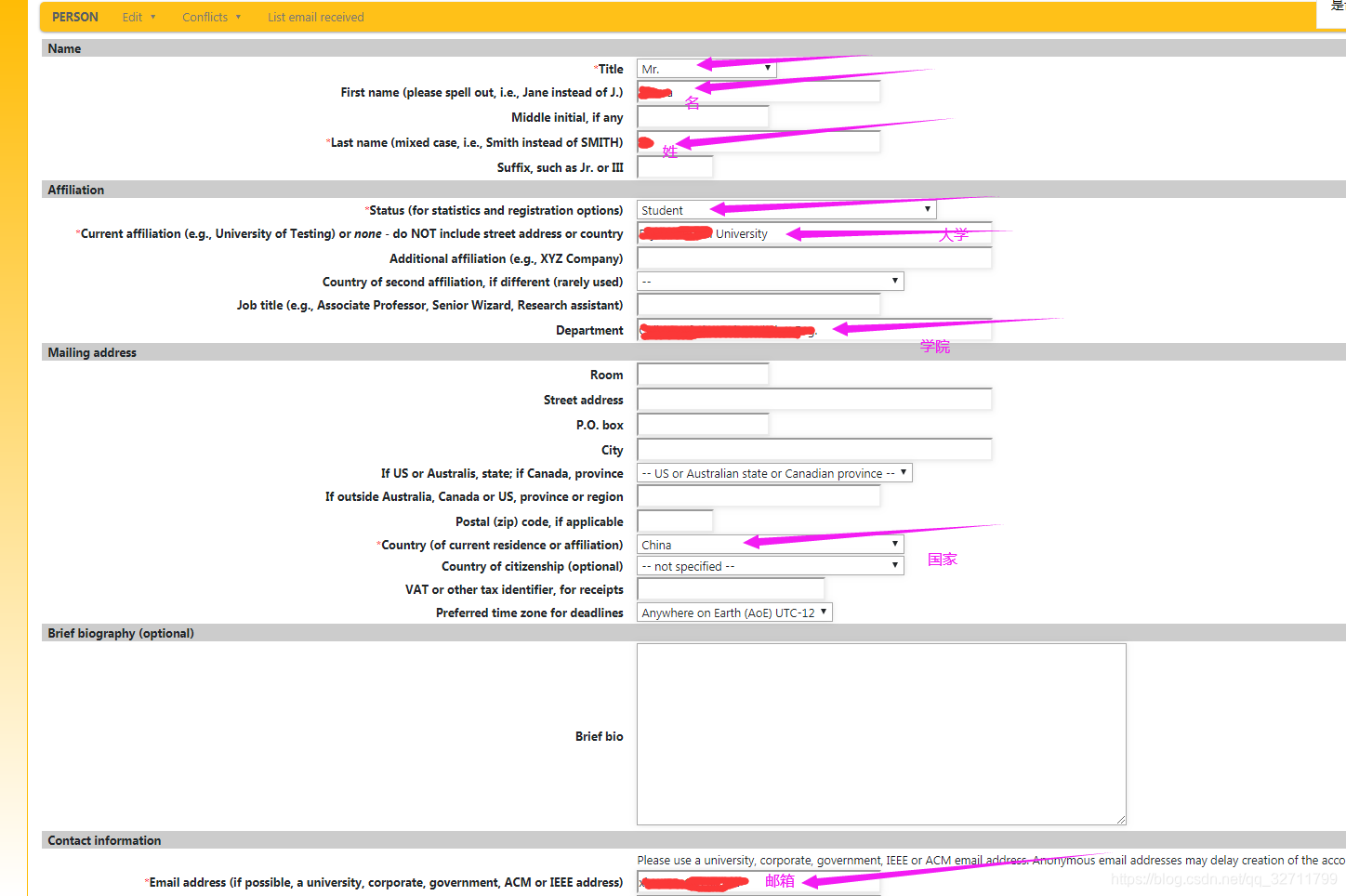 填写自己的信息,必填的必须填,尤其是姓名和邮箱