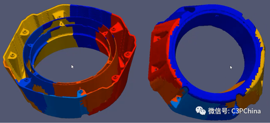这是快速铸造分区结果,与全工艺分析结果的对比。对于内浇口大小、位置、流态的判断、包卷位置、接合区、渣包的位置有高的指导价值。