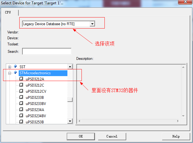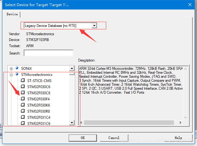 安装MDKCM524.EXE后,里面就能找到STM32型号了。