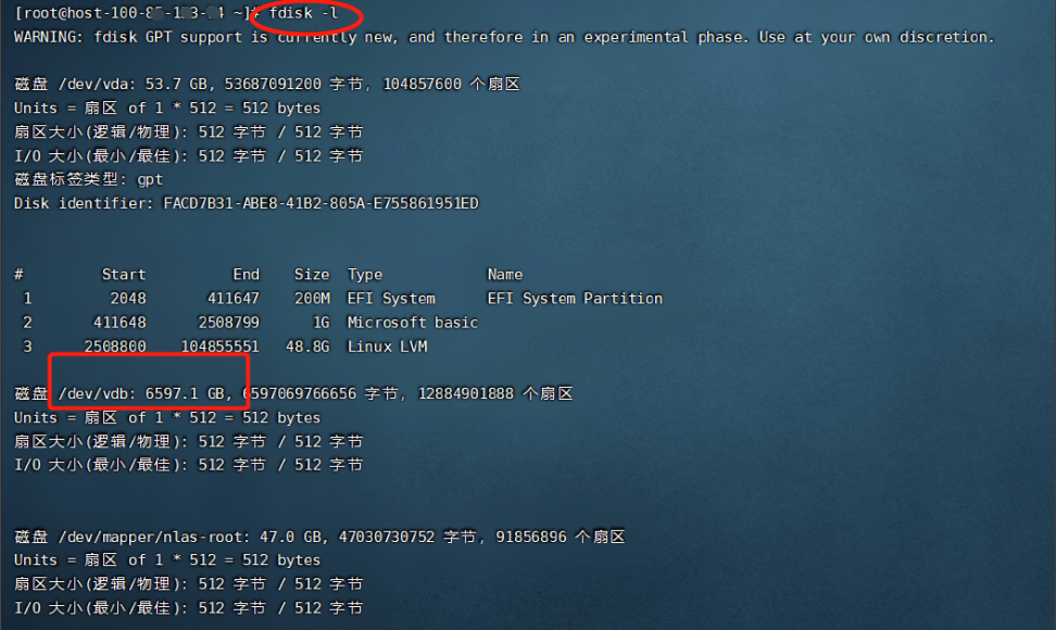 第一步 登录服务器后,输入该命令,查看需要挂载的磁盘位置