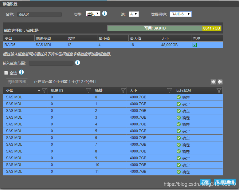 自从公司有了磁盘阵列,数据的安全性有了极大的保障,容量很大,并且使用了RAID6,一共12块硬盘,允许同时2块硬盘损毁不影响系统运行,而且硬盘损坏也非常方便,只需要将坏硬盘取下,换上新硬盘,在管理界面选择重建即可,使用的是Dell的ME4012,双主控,双电源,也就是说坏一个主控不影响系统运行