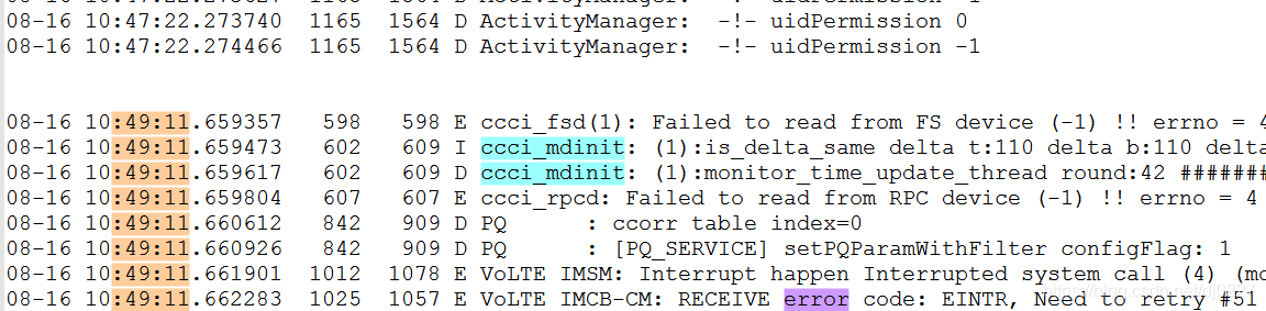 我们已经确定跃起的时间点10:49:11,那么寻找main log和system log中对应的时间点;