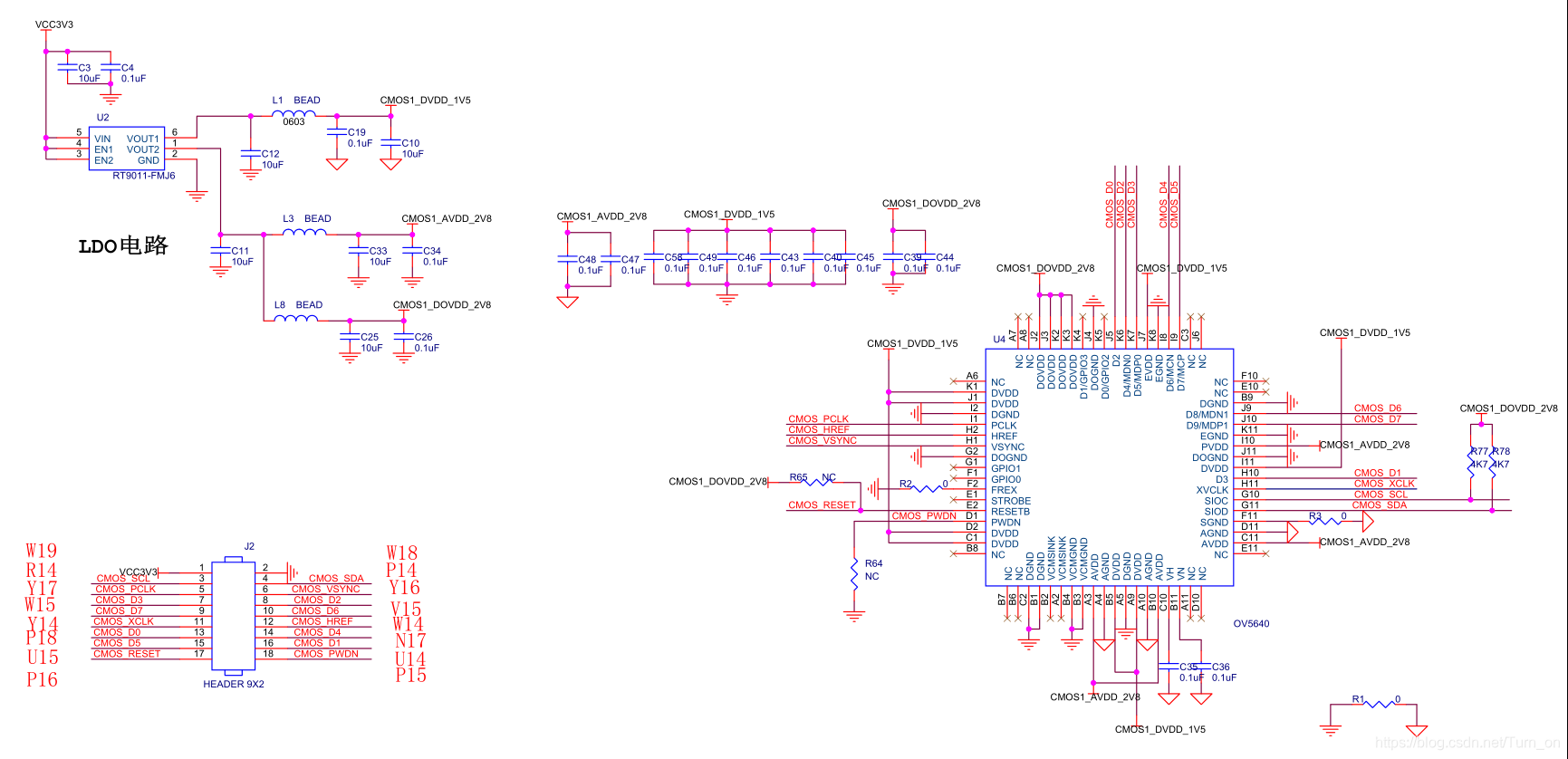 ax7020配套的和摄像头相关的例程都是使用的AN5642模块,为双目摄像头,但是我只需要一个摄像头啊,而且AN5642价格为450元,溢价太高太贵了,苦逼学生买不起。想着自己画个板子,然后买个OV5640摄像头也可以一样的使用,但是找了下,这个摄像头还挺贵的,如果带上镜头那还不如直接买一个模块划算。于是买了AN5640摄像头模块,闲鱼二手110元。因为AN5640模块本来是用在AX309等便宜一些的FPGA上的,因此我觉得应该很好配置。拿到手才发现坑了,首先上面没有晶振,所以需要FPGA另外输出一个时钟。然后引脚全部都不对应。