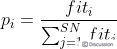 - 观察蜂根据采蜜蜂所提供的信息采用一定的选择策略选择蜜源,根据第一个公式更新蜜源信息,同时确定蜜源的花蜜量;