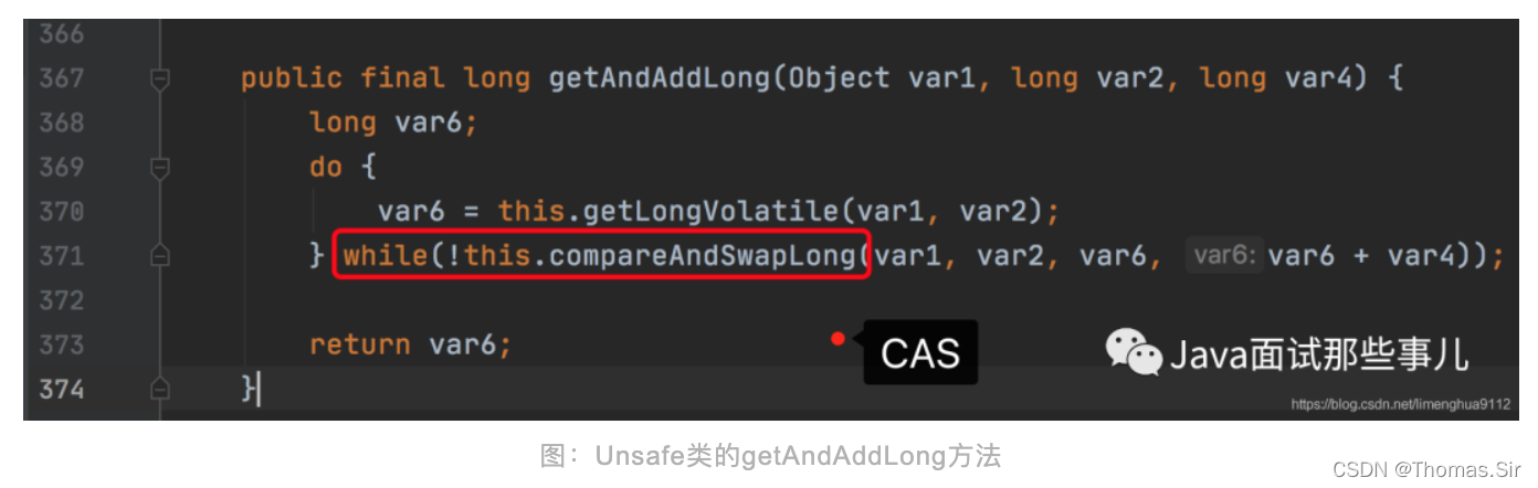 可以清楚地看到,AtomicLong的原子性自增操作,是通过CAS实现的。