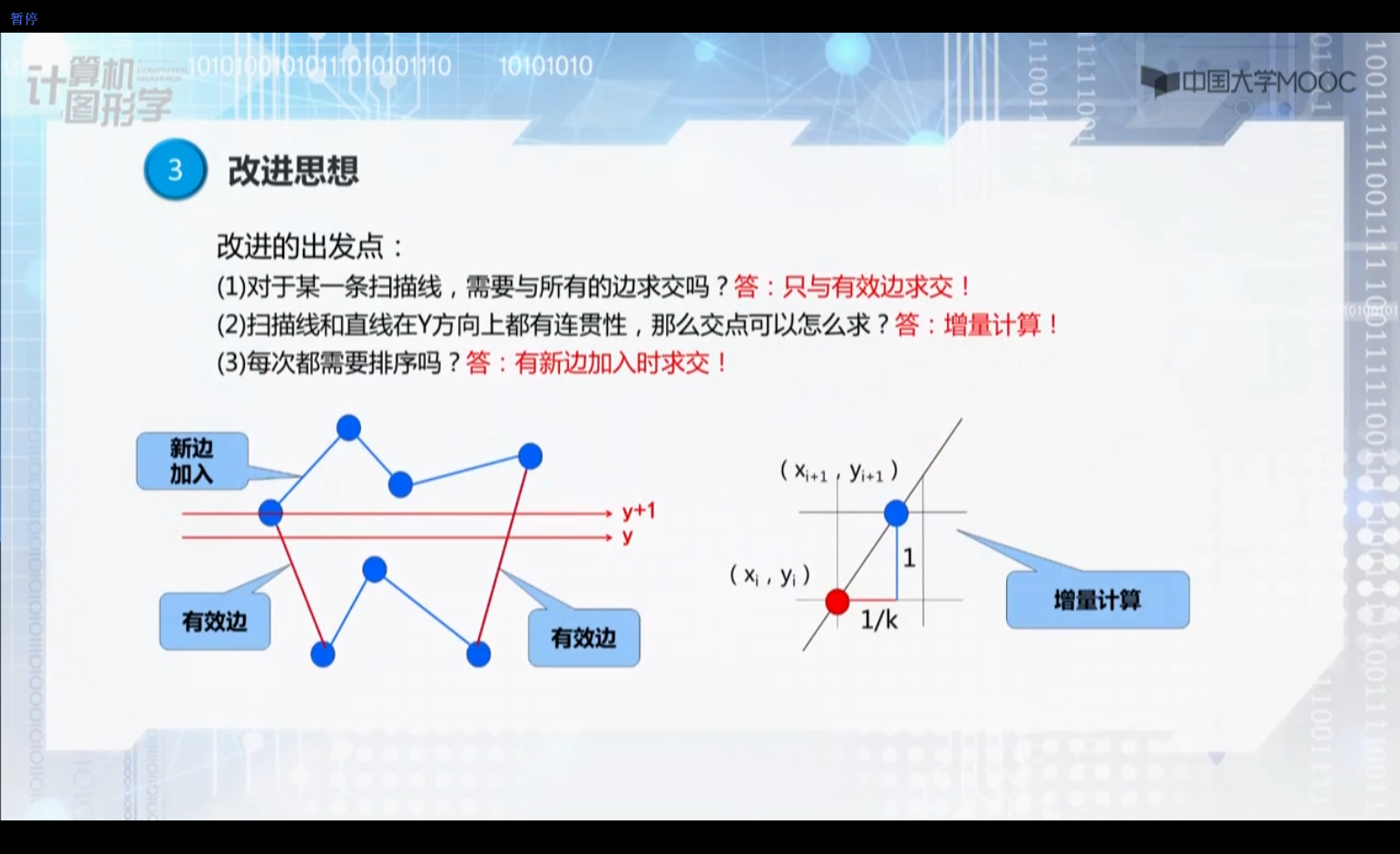 一般来说,新边的条数远远小于扫描线的条数,所以这种方法有效的减少了排序的次数