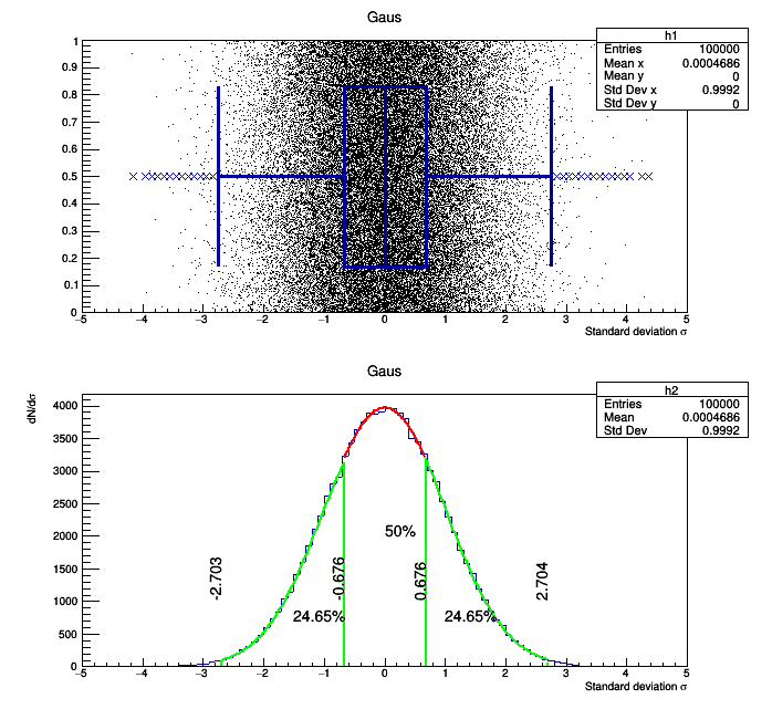for (int i = 0; i < 100000; i++) {myRand = rng->Gaus(0,1);h1->Fill(myRand,0);h2->Fill(myRand);