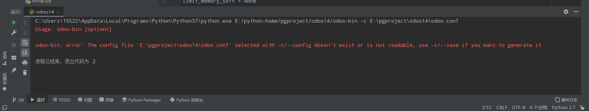 本文主要是介绍odoo14|报错信息:odoo-bin: error: The config file ‘E:\pgproject\odoo14\odoo.conf‘ selected with.....,希望对大家解决编程问题提供一定的参考价值,需要的开发者们随着小编来一起学习吧!