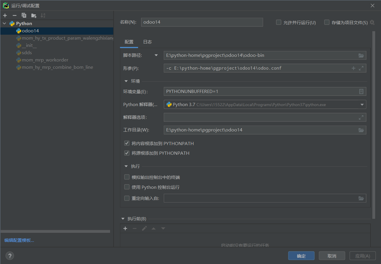 进入编辑配置会发现脚本路径与形参,基本路径不符