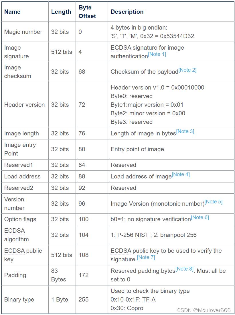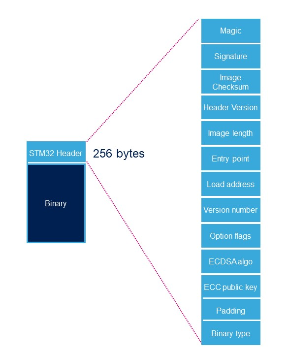 ROM Code加载的每个镜像文件头部都需要有一个STM32 header,如图所示: