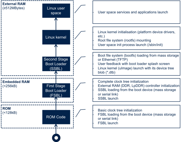 - ROM Code:初始化基本时钟,从选定的启动介质中加载FSBL,鉴权、启动FSBL;