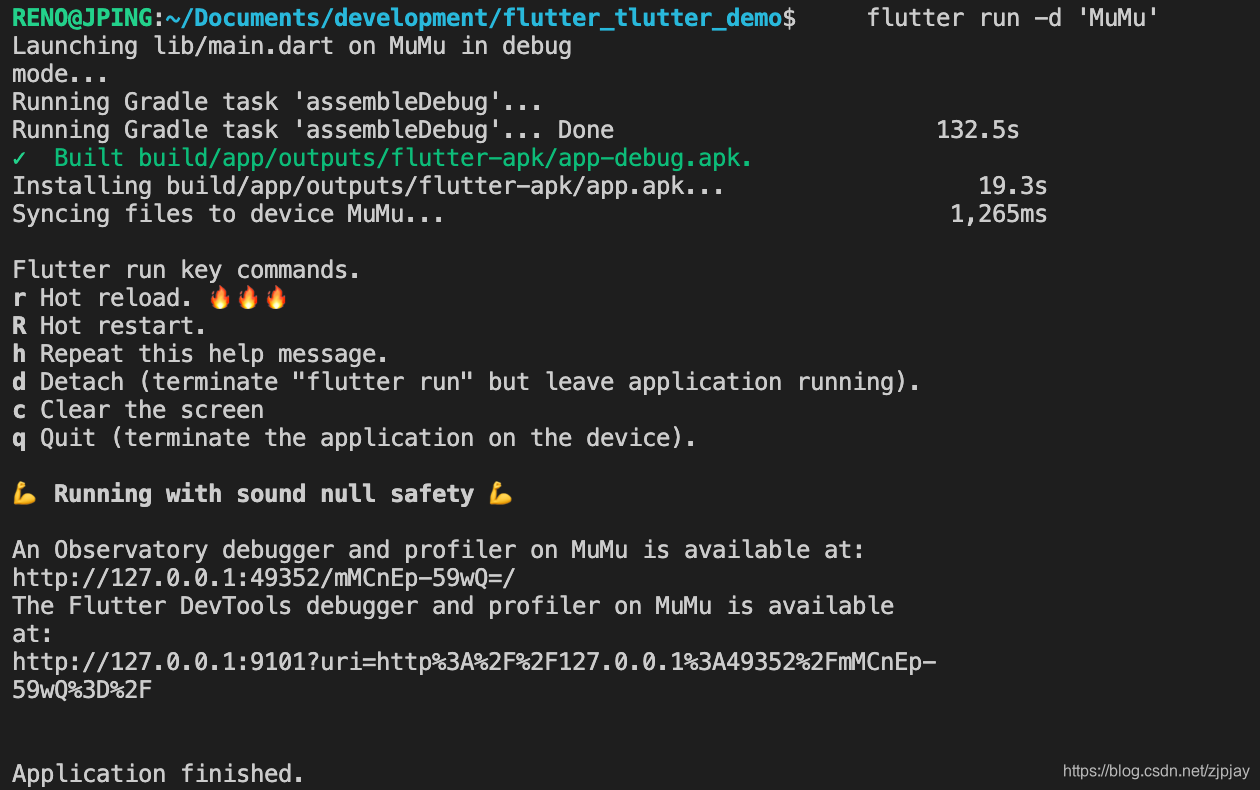 - d Detach (terminate "flutter run" but leave application running).