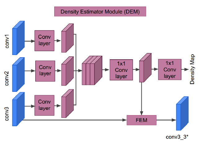 conv1-3的特征图经过密度估计模块由检测器D1进行检测。