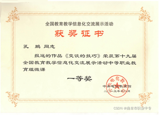 4、孔鹏同志荣获第十九届全国教育教学信息化交流展示活动微课一等奖