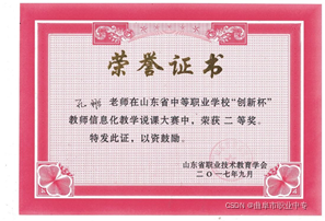 6、 孔鹏同志获得2017年山东省中等职业学校“创新杯”教师信息化教学说课大赛二等奖
