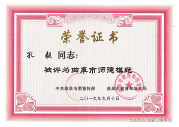 12、孔毅同志2019年荣获曲阜市师德模范