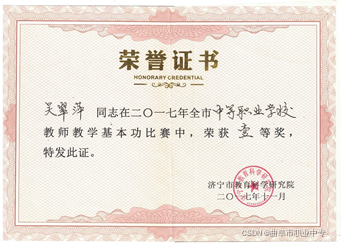 11、吴翠萍同志2017年荣获济宁市教师教学基本功一等奖