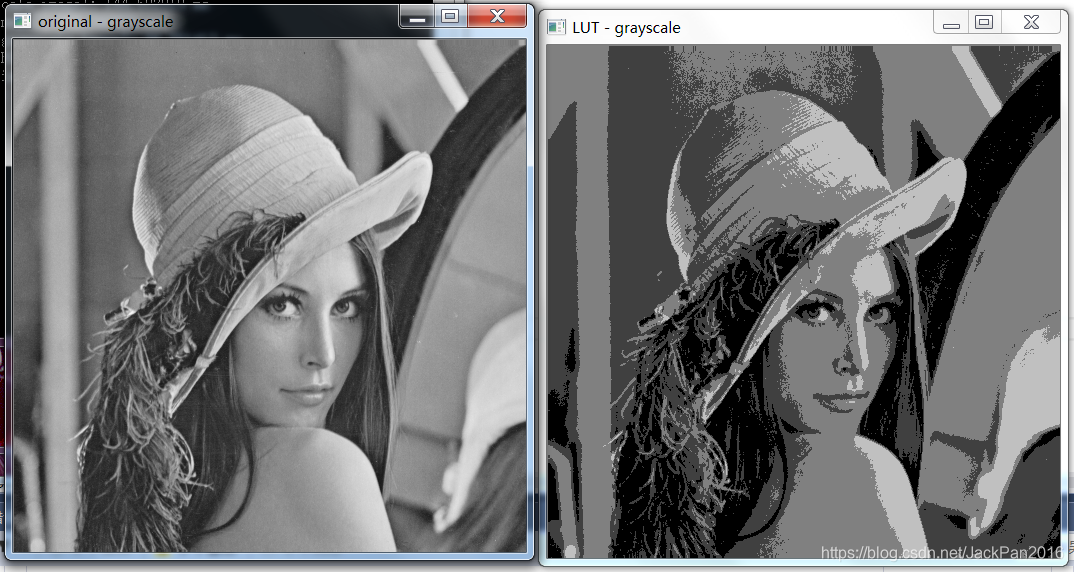 I_old为输入的像素值,I_new为输出的像素值,divideWidth代表要减少的度,我们可以理解为divideWidth为128的时候,对于灰度图像就做的是一个阈值为128的二值化。
