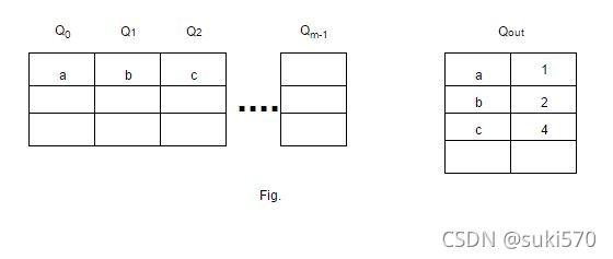 我们可以从图中看出 m 个 LRU 队列是如何放置在缓存中的。 还可以从图中看出 Qout 是如何存储块标识符及其对应的访问频率的。 a 被放置在 Q0 中,因为它最近只被访问过一次,我们可以在 Qout 中检查 b 和 c 如何分别放置在 Q1 和 Q2 中,因为它们的访问频率是 2 和 4。放置块的队列取决于访问 频率(f)作为 log2(f)。 当缓存已满时,在这种情况下,第一个被驱逐的块将是 Q0 的头部。 如果 a 被再次访问,它将移动到 b 下方的 Q1。