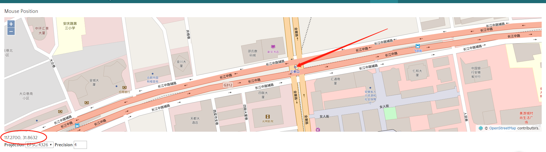 至此,地图纠偏已完成,我们来用wgs84坐标验证一下,由于openstreetmap坐标是基于wgs84的,那么我们从地图中任意选取一个点记录一下。