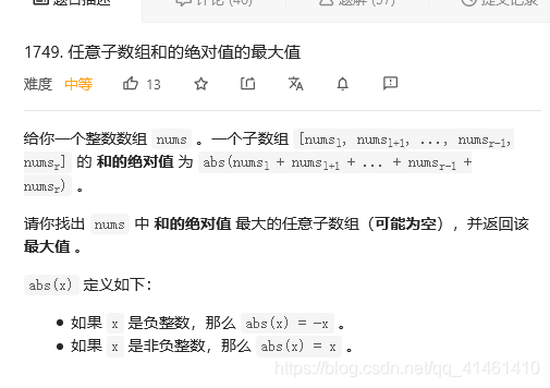 本文主要是介绍LeetCode 1749. 任意子数组和的绝对值的最大值,希望对大家解决编程问题提供一定的参考价值,需要的开发者们随着小编来一起学习吧!