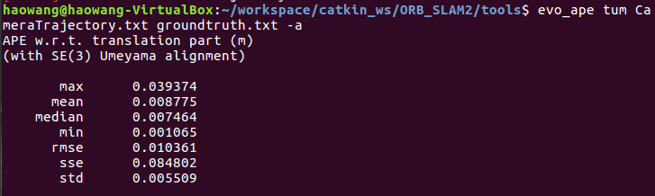 evo可以评估两条轨迹的误差,主要有两个命令:
