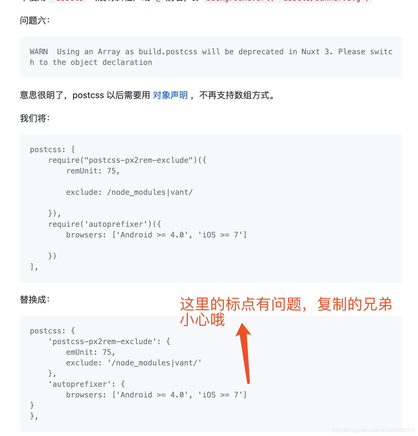 (Using an Array as build.postcss will be deprecated in Nuxt 3. Please switch)