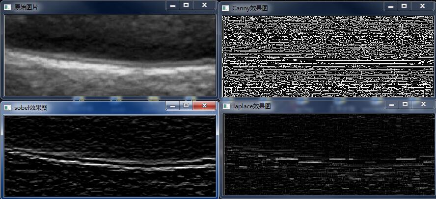Mat src = imread("C:/Users/Administrator/Desktop/4.jpg");imshow("原始图片",src);Mat dst0,dst1,dst11,dst2,dst22,dst3,dst33;//高斯滤波消除噪声// GaussianBlur(src, src, Size(3, 3), 0, 0, BORDER_DEFAULT);//转换为灰度图cvtColor(src, dst0, COLOR_RGB2GRAY);//HistD(dst0);//使用Laplace函数//第三个参数:目标图像深度;第四个参数:滤波器孔径尺寸;第五个参数:比例因子;第六个参数:表示结果存入目标图Laplacian(dst0, dst1, dst0.depth(), 3, 1, 0, BORDER_DEFAULT);//计算绝对值,并将结果转为8位convertScaleAbs(dst1, dst11);imshow("laplace效果图", dst11);Canny(dst0,dst2,3,9,3);convertScaleAbs(dst2, dst22);imshow("Canny效果图", dst22);Sobel(dst0,dst3,dst0.depth(),0, 1,3, 1, 1, BORDER_DEFAULT);convertScaleAbs(dst3, dst33);imshow("sobel效果图", dst33);