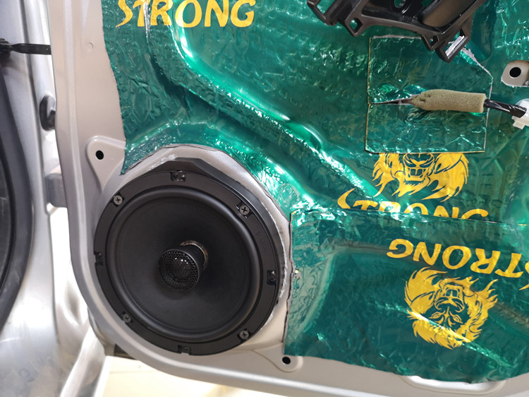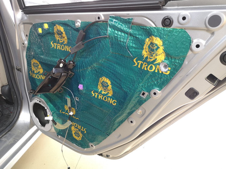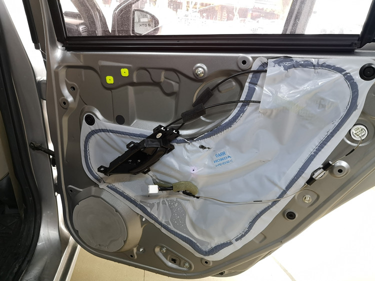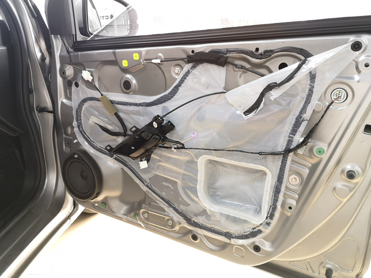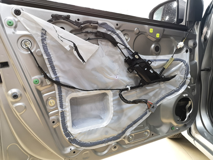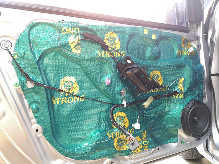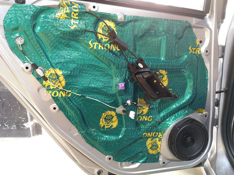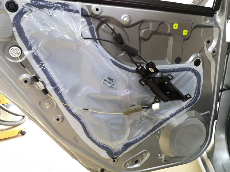 锋范作为日系车的一员,门板的钣金薄是通病,所以日系车的隔音都非常的差,为了缓解隔音的问题,我们为这辆车的四门做隔音降噪处理。四门的两层隔音可以增加门板厚实度,也能让门板密闭性更佳,利于音响的发挥。