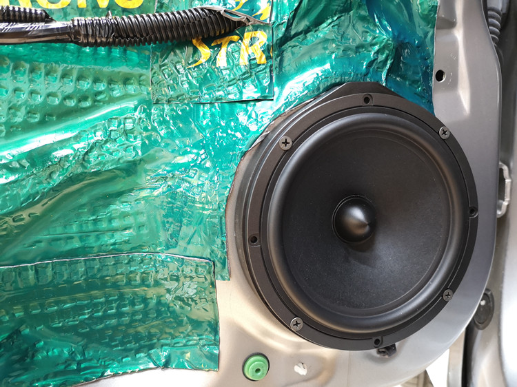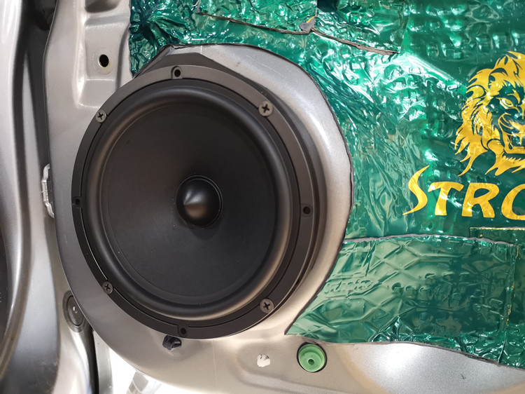 前声场牧童VA165套装喇叭,中低音安装在门板上,置换了原车的中低音,提升汽车音响的表现力。