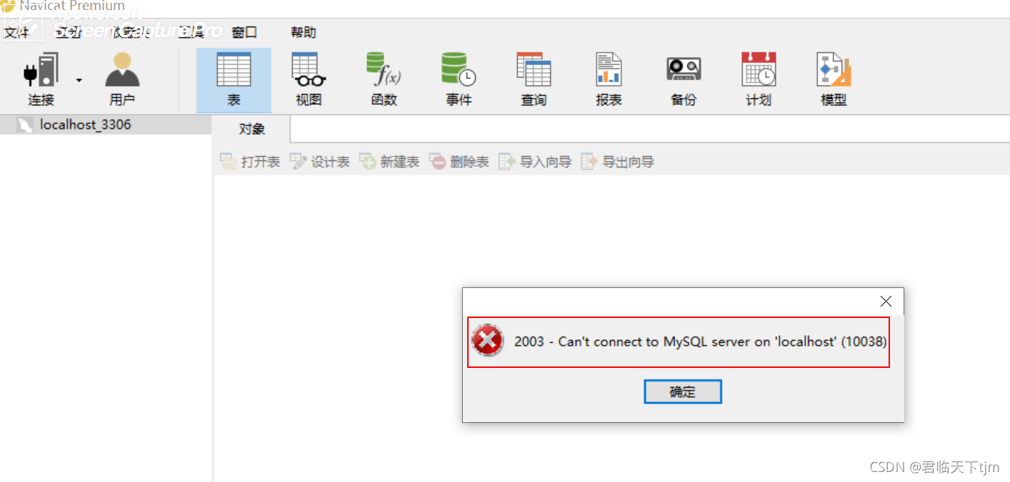 本文主要是介绍2003 - Can‘t connect to MySQL server on ‘localhost‘(10038)【已解决】,希望对大家解决编程问题提供一定的参考价值,需要的开发者们随着小编来一起学习吧!