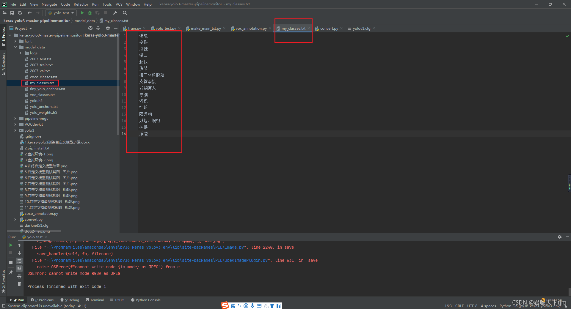 使用训练好的模型“trained_weights_final.h5”测试时,类别名称显示乱码。