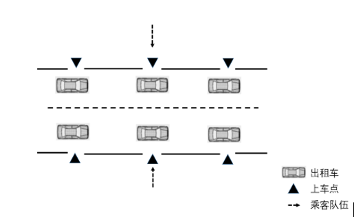 2.多车道载客不可变道模型:两车道均可以用来载客,但是为了安全起见,出租车不能变道。