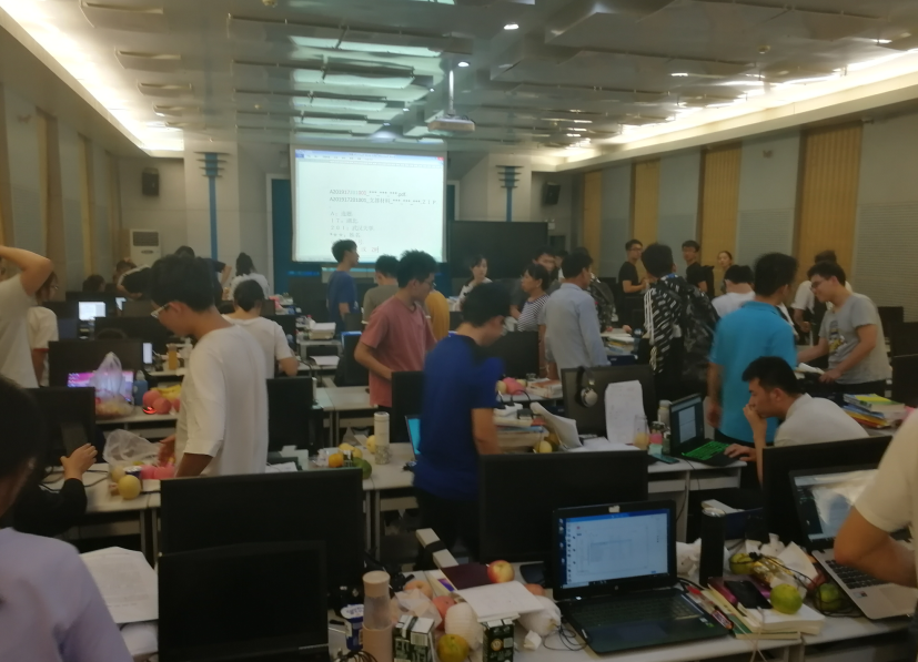 9.12下午睡了个午觉就早早来到了机房。然后就被拉去当苦力了搬运参赛队员的补给了。不得不说武大竞赛队员的待遇真的是超好,包三天一日三餐,中秋节还发了水果和各种零食,月饼。