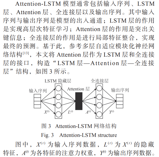 模型包括:LSTM层、Attention层、全连接层,LSTM的作用是特征学习,Attention层的作用的计算出关键信息、全连接层的作用是整合特征完成预测。