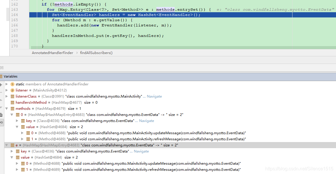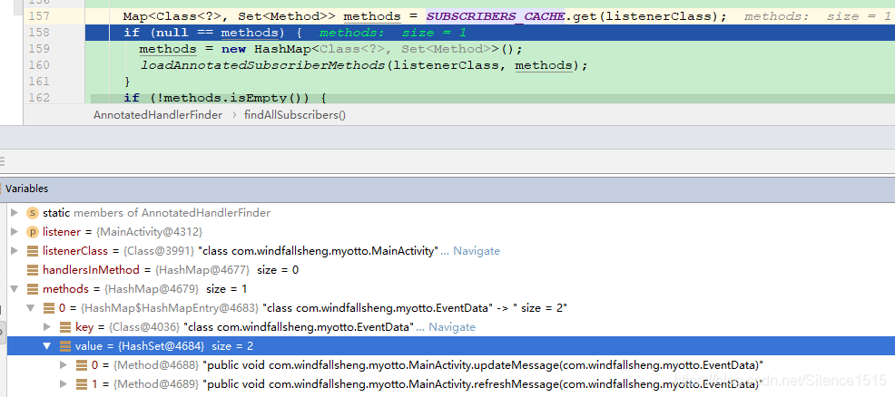 value 是Set<Method>集合,比如:refreshMessage(EventData eventData)方法 和 updateMessage(EventData eventData)方法;