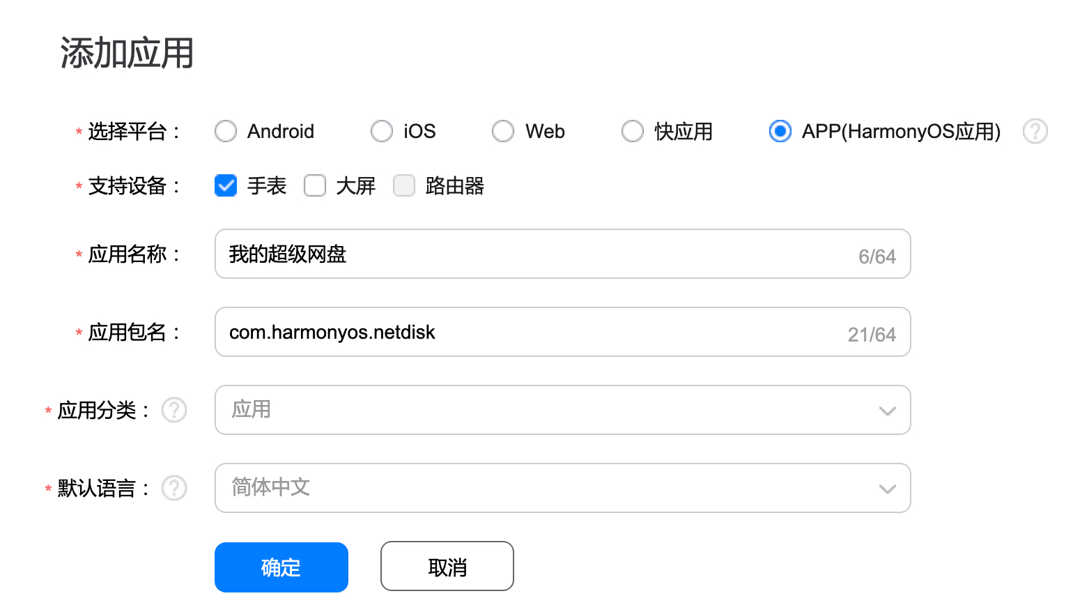 添加应用页面如图7所示。读者需要在该页面按图1-30所示填写必要的信息(需要按自己App的情况填写相应的内容)。其中“支持设备”保持默认值就可以在HarmonyOS手机上运行。