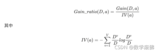 信息增益率是信息增益与其对应属性固有值(分裂信息度量)的比值。