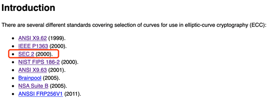 第一部分是「sec」,sec是Standards for Efficient Cryptography 的简称,是SECG发布的一种密码学协议标准。