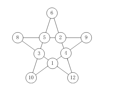 如【图1.png】的五星图案节点填上数字:1~12,除去7和11。