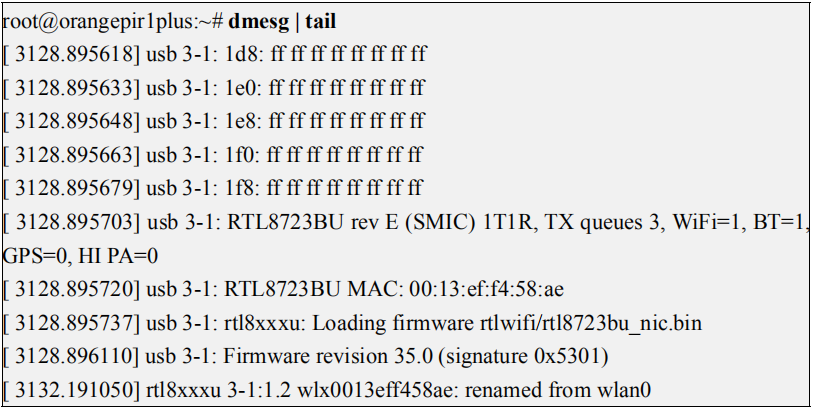 3) 通过 dmesg 命令可以看到 RTL8723BU 模块的加载信息