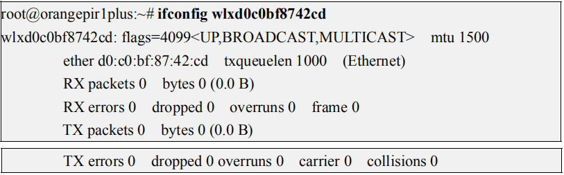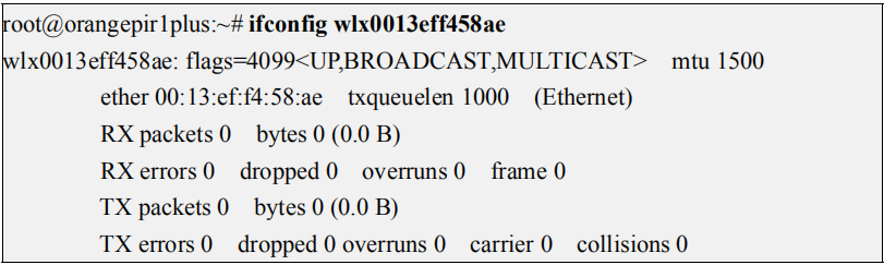 4) 然后通过 ifconfig 命令可以看到 RTL8723BU WIFI 的设备节点,WIFI 的连接和测 试方法请参看香橙派官方对应型号使用手册的《WIFI 连接测试》 章节